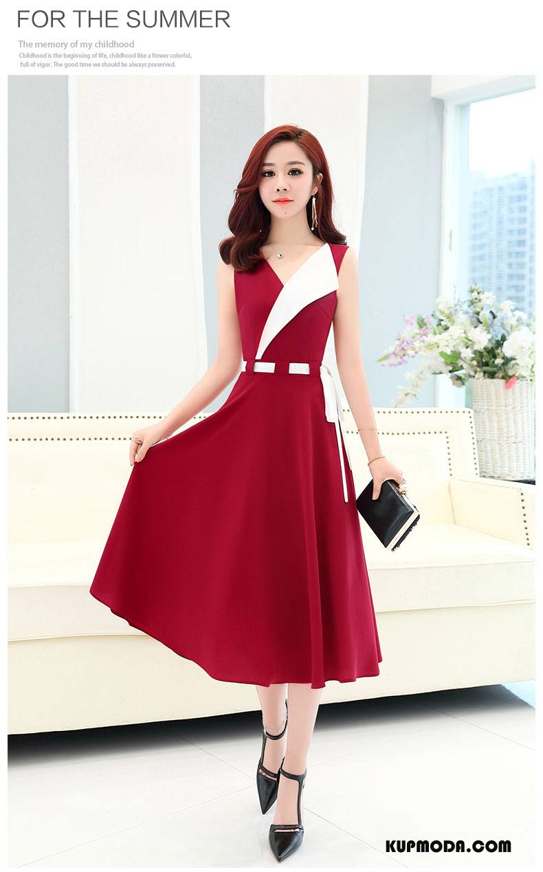 Sukienka Damskie Lato 2018 Eleganckie Tendencja Casual Ciasno W Talii Mieszane Kolory Czerwony Sukienka Damskie Lato 2018 Eleganckie Tendencja Casual Ciasno W Talii Mieszane Kolory Czerwony